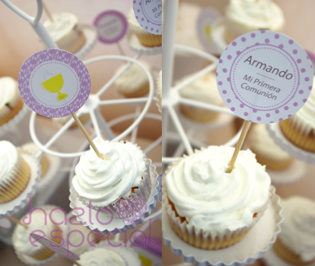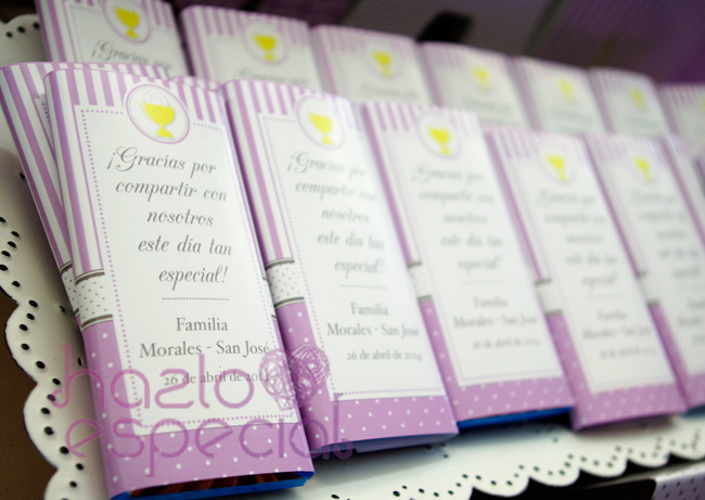 Para decorar esta mesa, hemos utilizado el Kit de Comunión Malva, lo podéis ver AQUI.